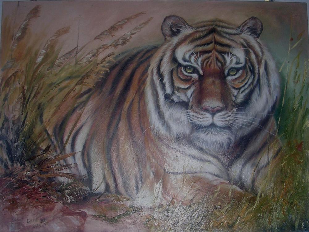 静卧的虎饱食无忧,景观天下,安然之态。